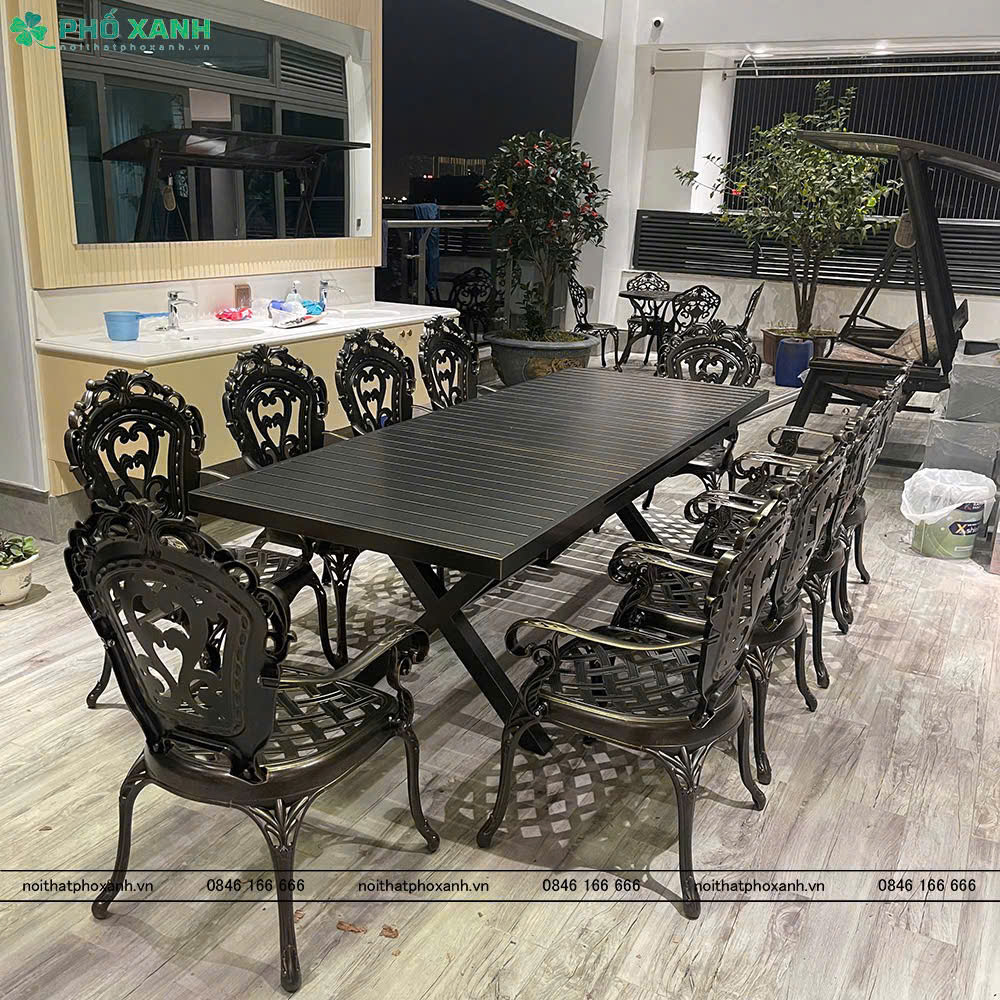 Bàn ghế nhôm đúc thu gọn kéo dài thông minh hiện nay là giải pháp nội thất hiện đại, đáp ứng nhu cầu tối ưu không gian và nhu cầu mở rộng, mang lại sự tiện nghi cho người sử dụng.