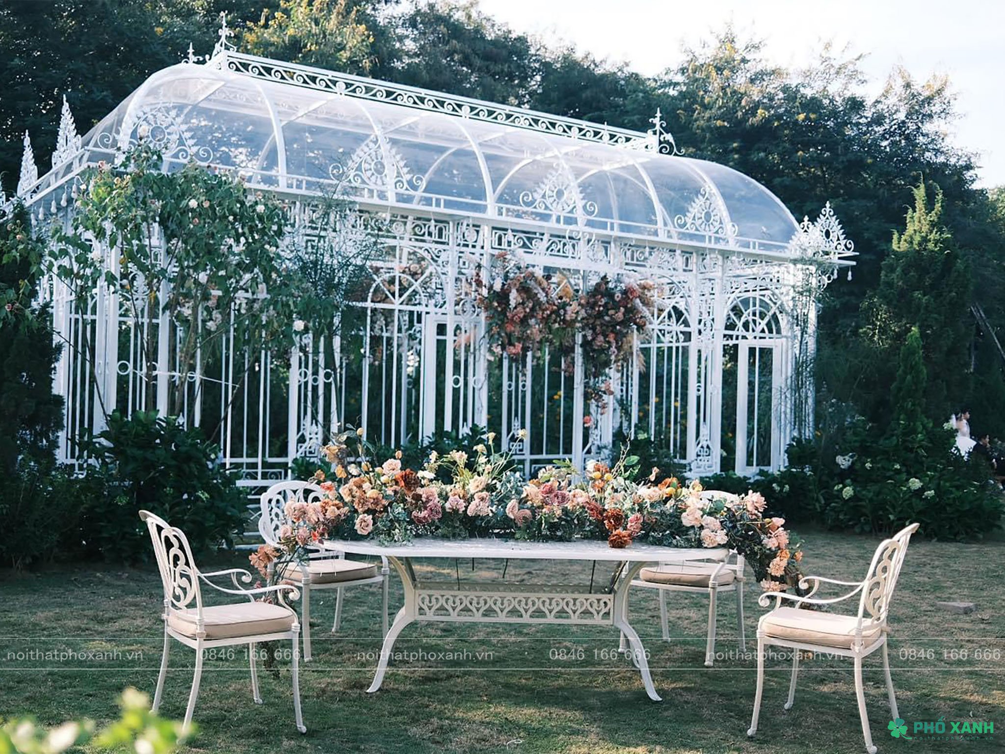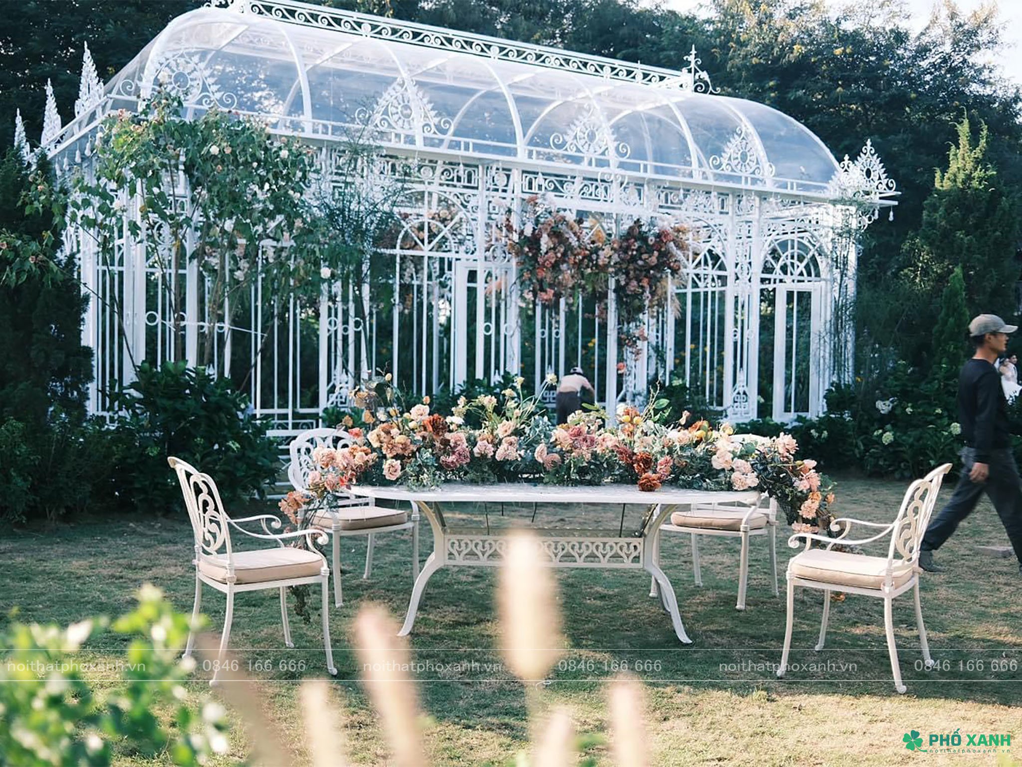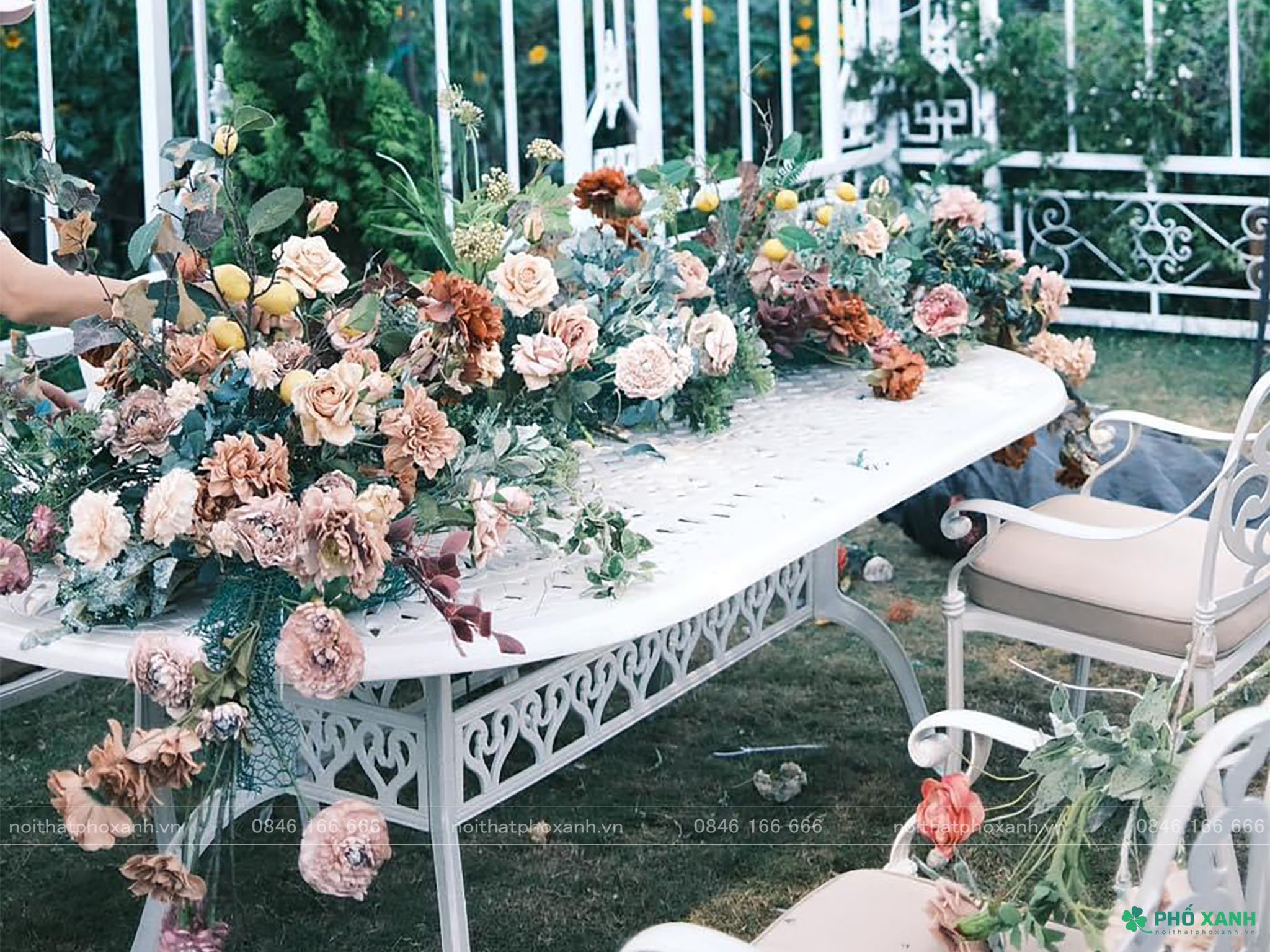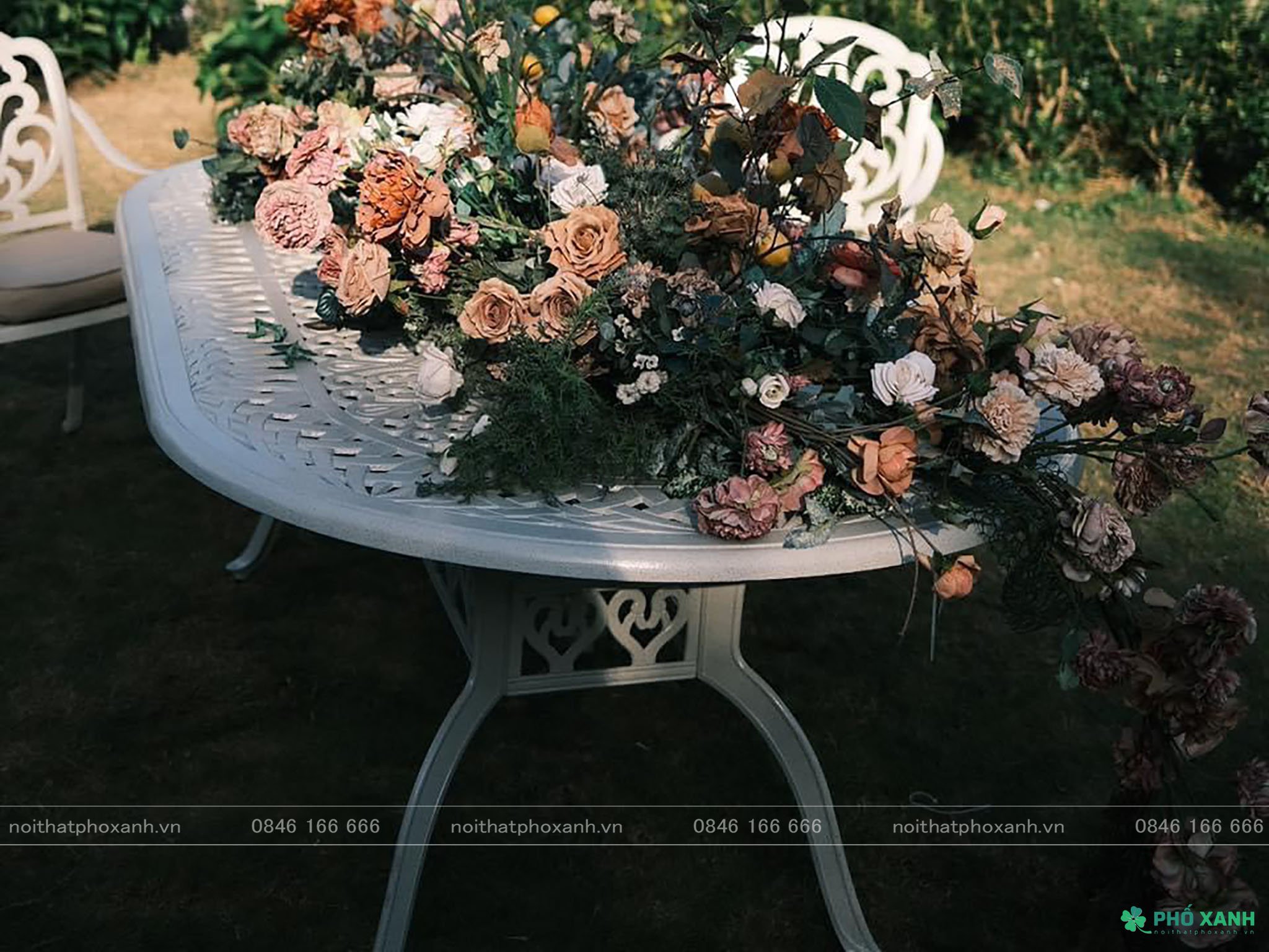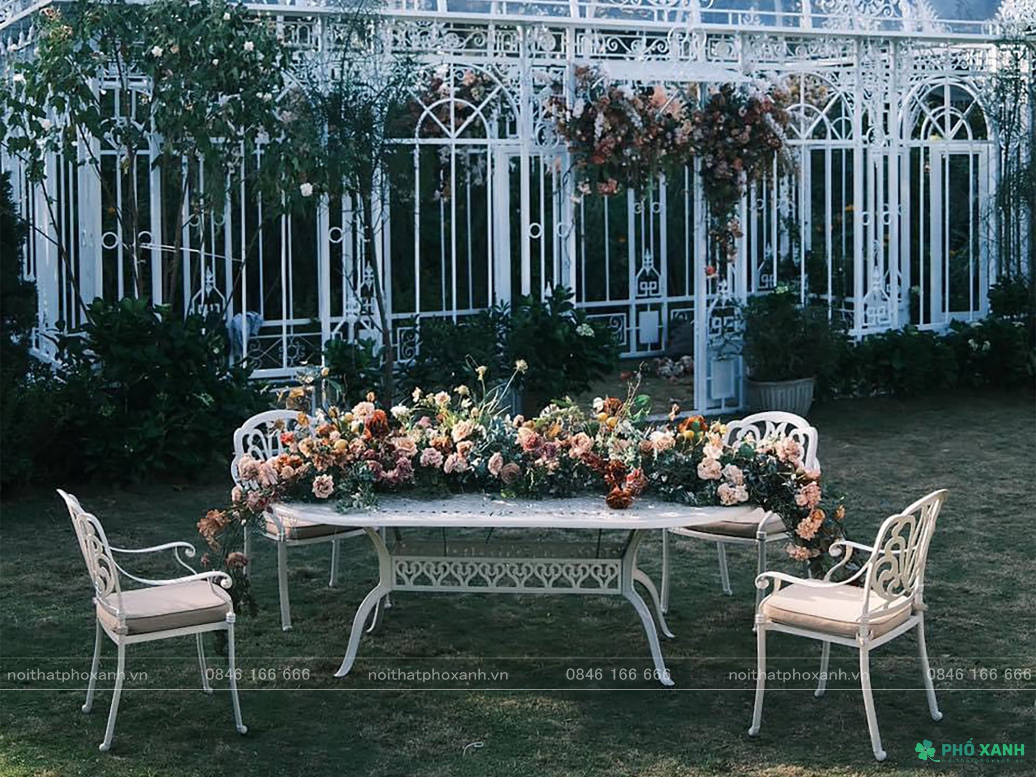 Nội Thất Phố Xanh cung cấp Bộ bàn ghế nhôm đúc bầu dục màu trắng tại Phim trường Santorini Park XV75+49J, Gamuda Central, Hoàng Mai, Hà Nội, Việt Nam