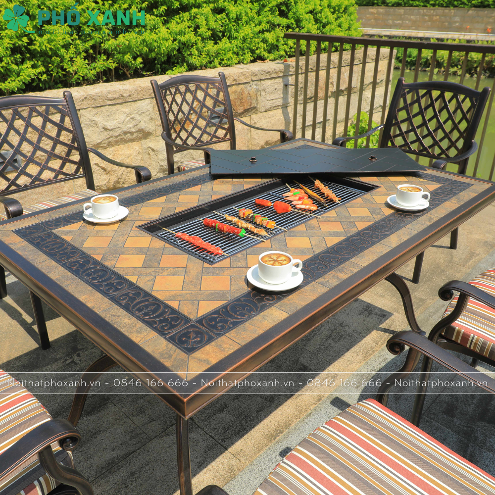 Tóm lại, bàn nhôm đúc mặt đá kết hợp nướng điện BND-N18998VD là một lựa chọn xuất sắc cho không gian nhà hàng sân vườn. Sự kết hợp giữa vật liệu cao cấp, thiết kế hiện đại và tính tiện ích cao đã tạo nên một sản phẩm vượt trội, đáp ứng mọi nhu cầu của khách hàng.