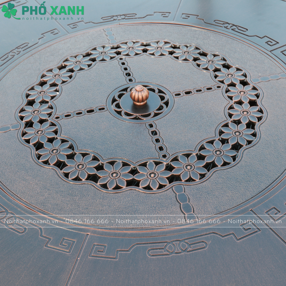 Bàn được thiết kế với mặt bàn tròn liền kết hợp với kệ nướng BBQ, tạo nên sự tiện lợi và linh hoạt trong việc sử dụng. Mặt bàn được gia công tỉ mỉ, đảm bảo độ bền cao và dễ dàng vệ sinh sau mỗi lần sử dụng. Kích thước phù hợp cho 6 người ngồi xung quanh, tạo không gian giao lưu và thưởng thức các món nướng cùng nhau một cách thoải mái.