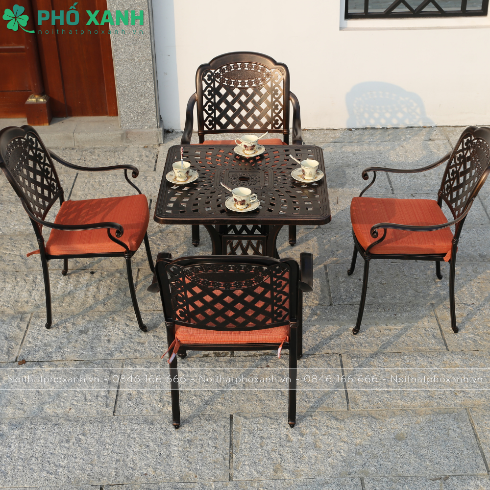 Nội Thất Phố Xanh - Đơn vị cung cấp bàn ghế nhôm đúc mặt vuông uy tín: