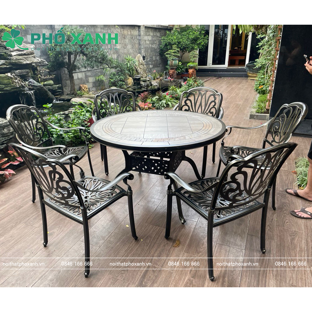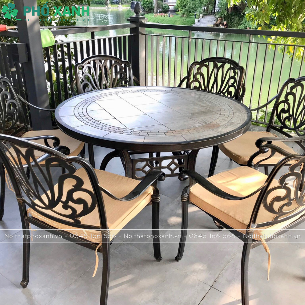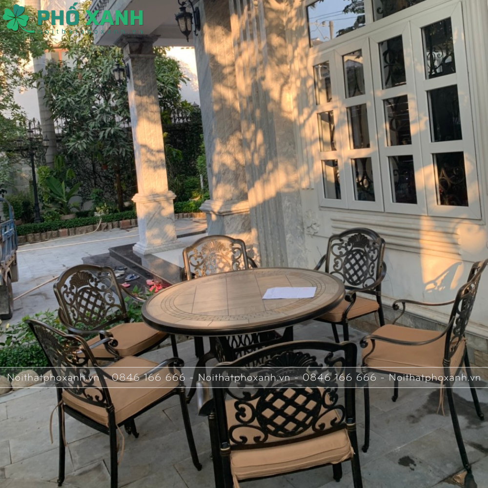 Với thiết kế sang trọng và chất liệu chắc chắn, bộ bàn ghế hợp kim nhôm đúc mặt đá sẽ là điểm nhấn hoàn hảo cho không gian sân vườn biệt thự của bạn. Hãy chọn ngay cho mình một bộ bàn ghế này để tạo nên không gian ngoại thất đẹp mắt và thoải mái.