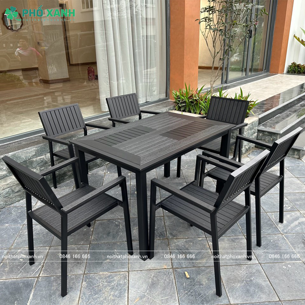 Bộ bàn ghế Composite (Polywood) được sản xuất với liệu chắc chắn, thiết kế hiện đại, màu sắc sang trọng là ưu điểm nổi bật của sản phẩm, sản phẩm này không chỉ mang lại sự tiện lợi mà còn tạo điểm nhấn sang trọng cho không gian ngoại thất.