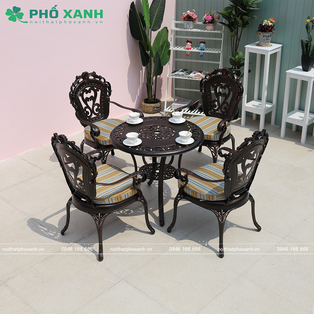 Bộ bàn ghế ngoài trời hợp kim nhôm đúc BND-HV80TTD là sản phẩm nhập khẩu cao cấp, được thiết kế đặc biệt để sử dụng cho không gian sân vườn,ngoài trời. Với chất liệu hợp kim nhôm đúc toàn bộ, sơn tĩnh điện nên có độ bền cao và khả năng chịu được thời tiết khắc nghiệt của Việt Nam.