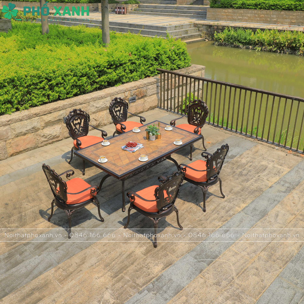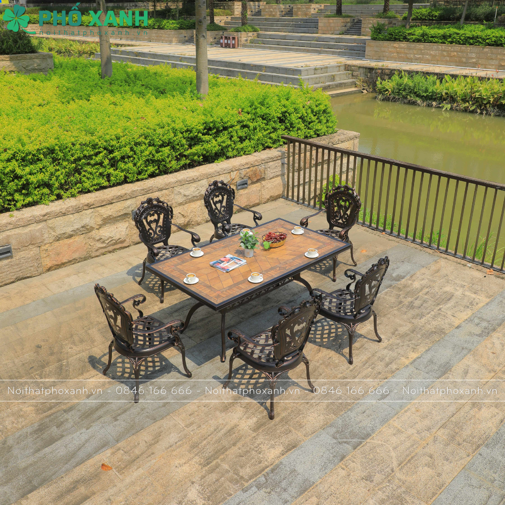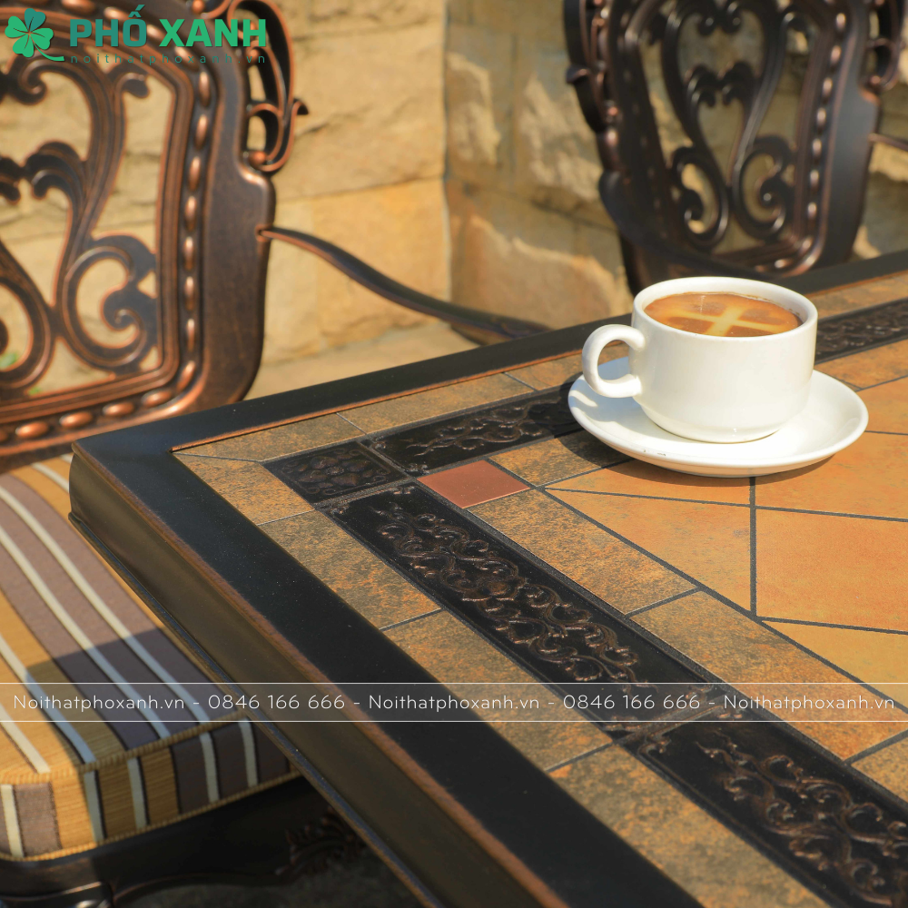 Với khả năng chịu được thời tiết khắc nghiệt tại Việt Nam, bộ bàn ghế nhôm đúc mặt đá này không bị ảnh hưởng bởi mưa nắng hay gió lớn. Đây thực sự là sự lựa chọn thông minh cho các không gian ngoại thất cần sự bền bỉ và ổn định.