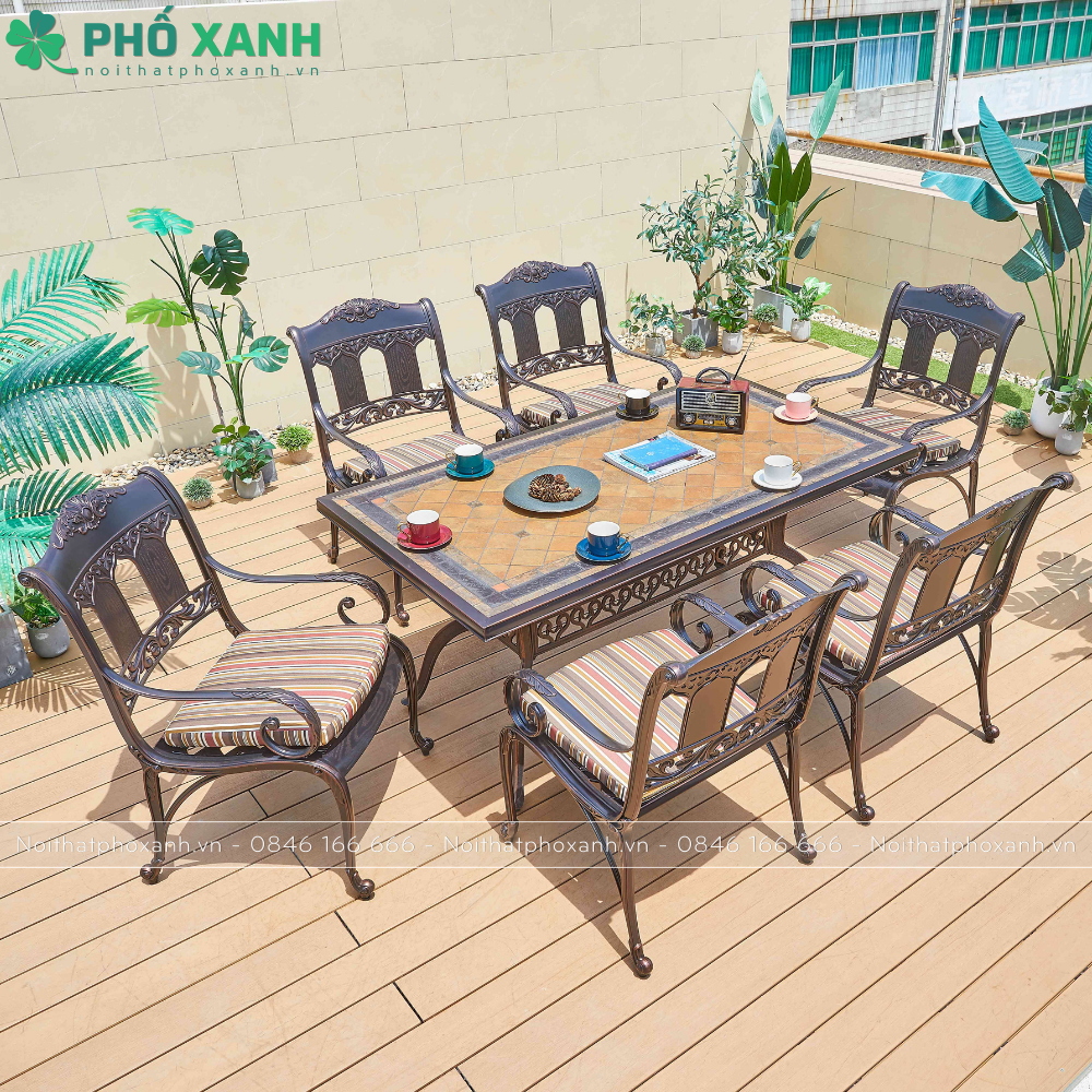 Không chỉ là sản phẩm nội thất tiện ích, bộ bàn ghế nhôm đúc mặt đá còn là biểu tượng của sự sang trọng và đẳng cấp. Với khả năng chống chịu tốt với thời tiết khắc nghiệt và tuổi thọ cao, sản phẩm này là sự lựa chọn hoàn hảo cho những không gian ngoại thất cần sự bền bỉ và đẳng cấp.