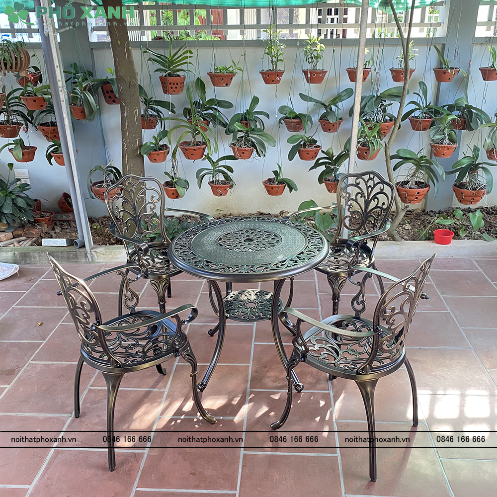 Bộ bàn ghế nhôm đúc ngoài trời D80 màu đen đồng BND-HV80D