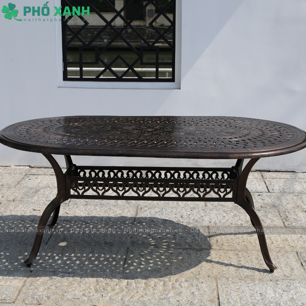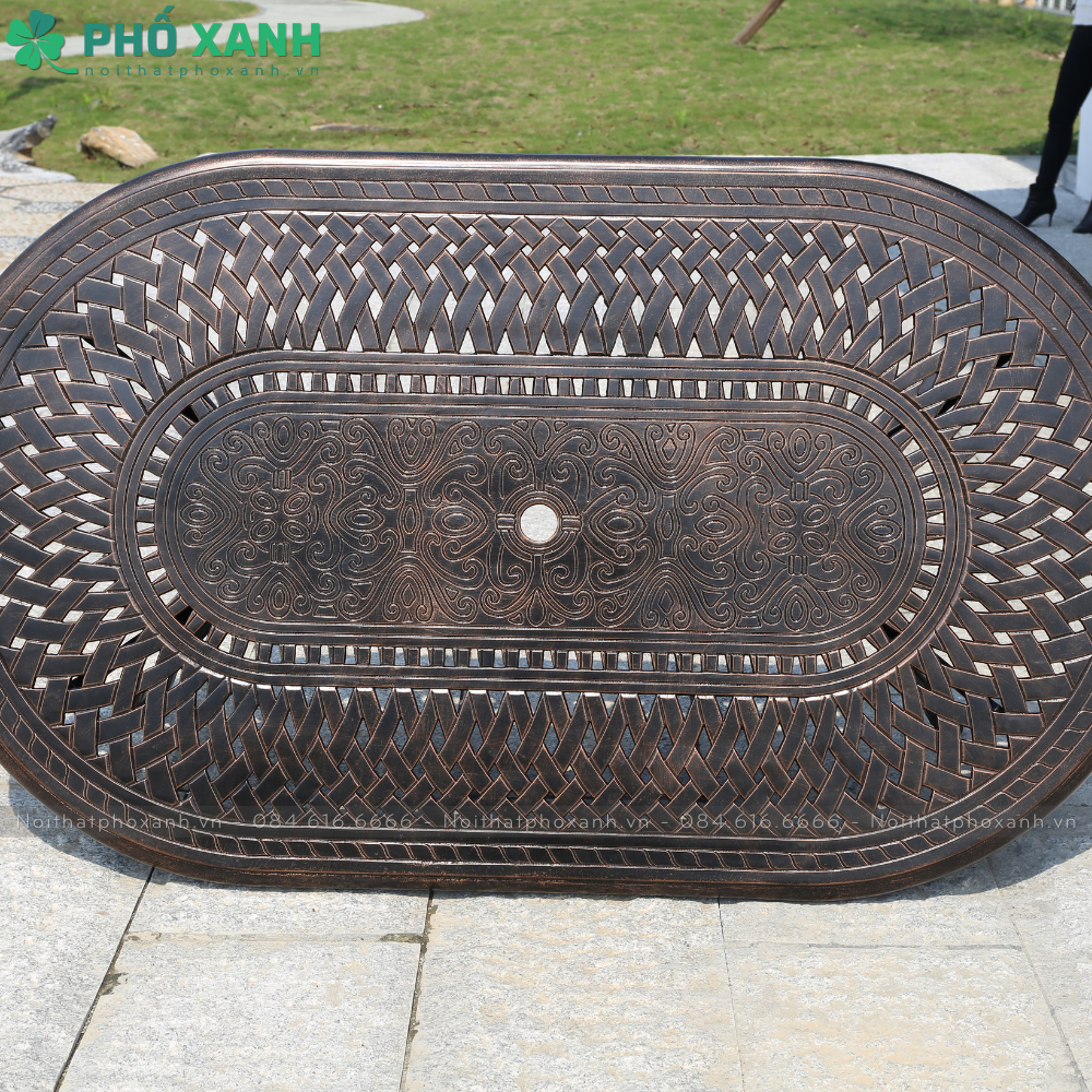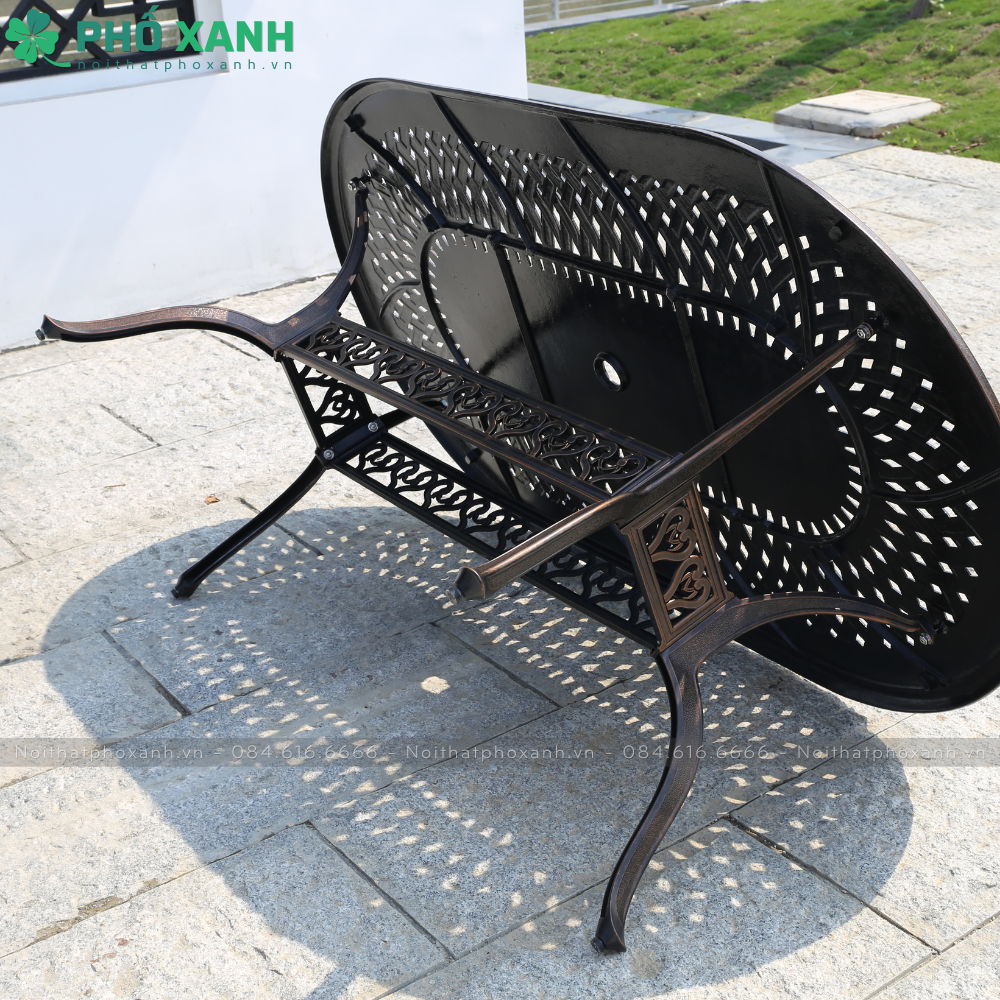 Chất liệu và kích thước của bộ bàn ghế nhôm đúc bầu dục