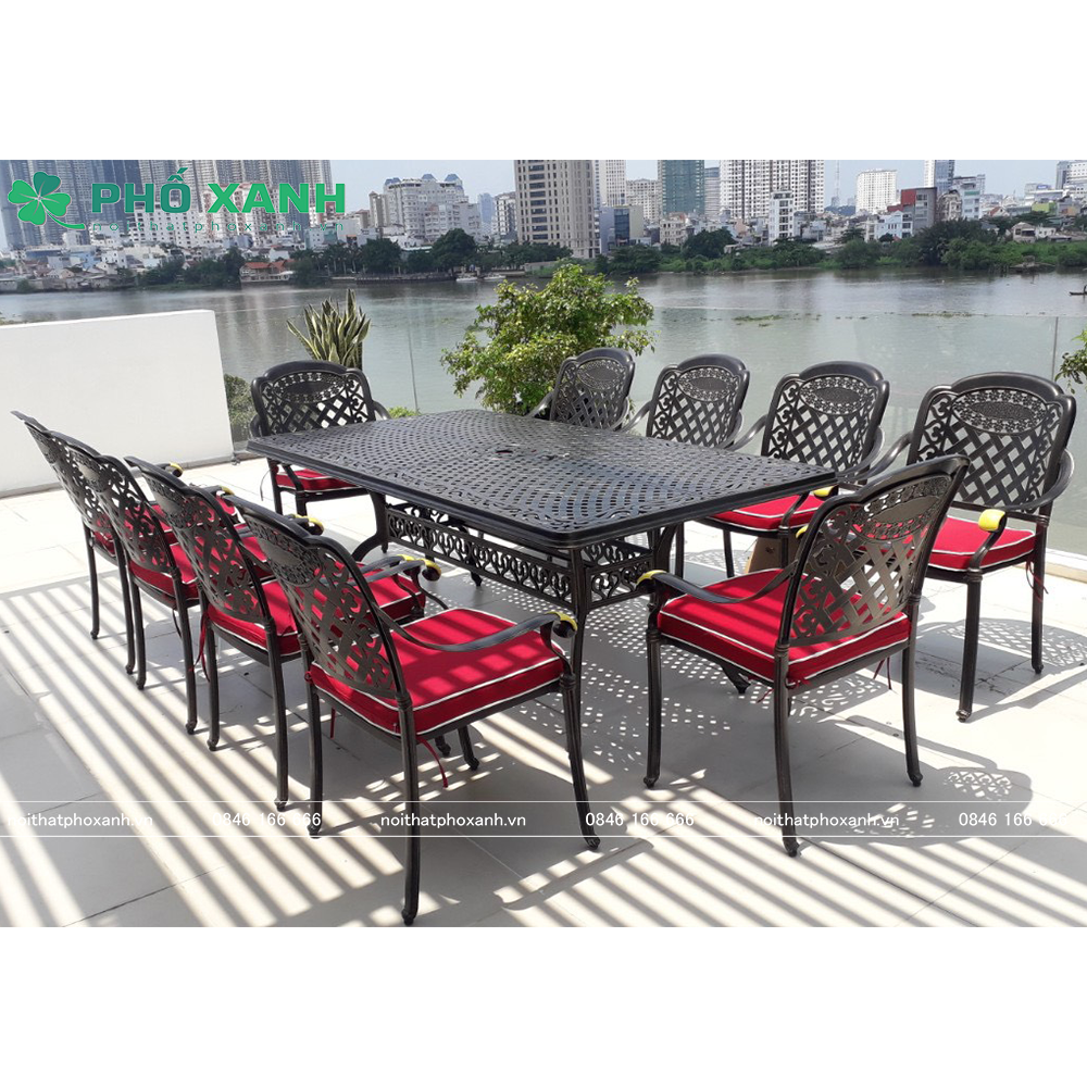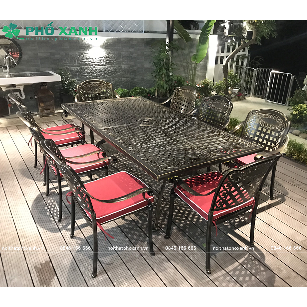 • Bộ bàn ghế nhôm đúc ngoài trời hình chữ nhật BND-21001100D