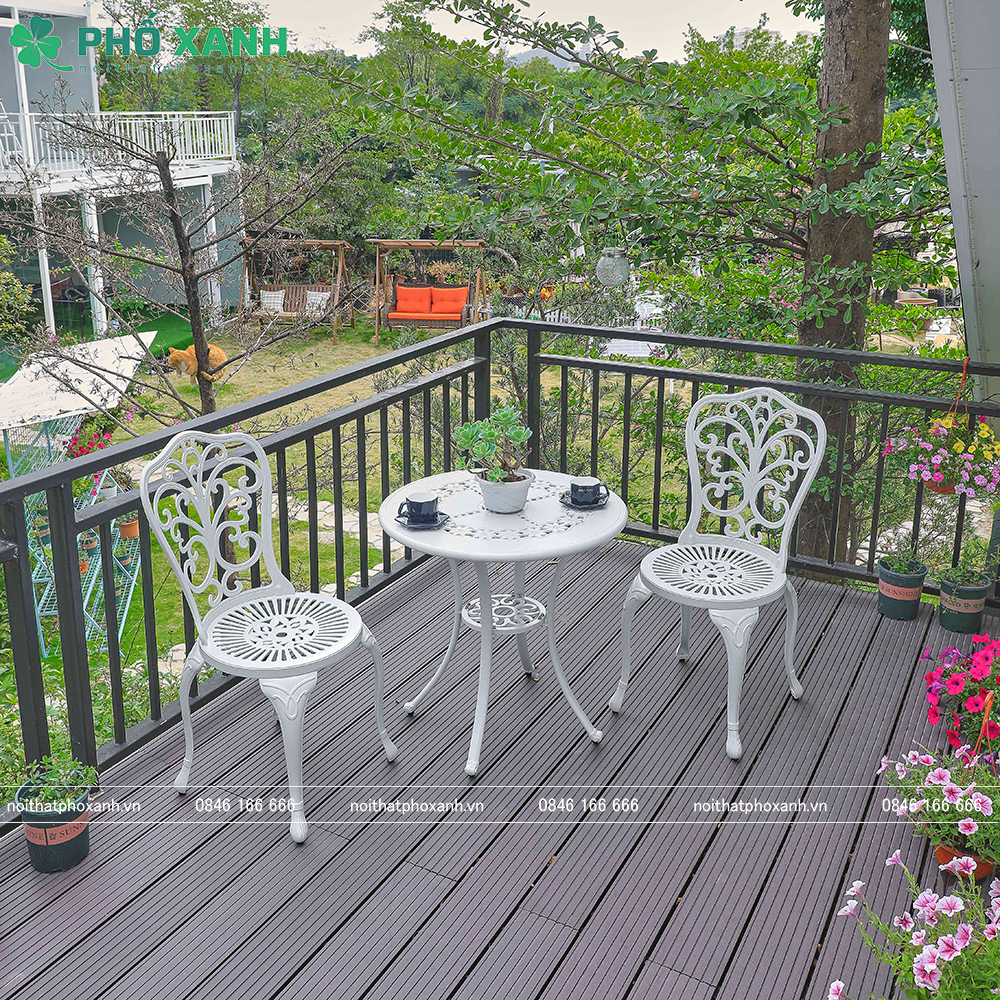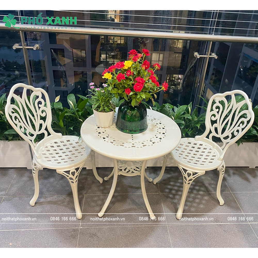 Bộ bàn ghế nhôm đúc nhỏ ban công, sân vườn BND-HV70TK là lựa chọn tuyệt vời cho những ai yêu thích không gian ngoài trời. Với tính năng bền bỉ, thiết kế sang trọng cùng với mức giá hợp lý, sản phẩm chắc chắn sẽ mang đến cho bạn những giây phút thư giãn tuyệt vời. Nếu bạn đang tìm kiếm một bộ bàn ghế cho ban công hay sân vườn của mình, hãy cân nhắc đến BND-HV70TK từ Phố Xanh!
