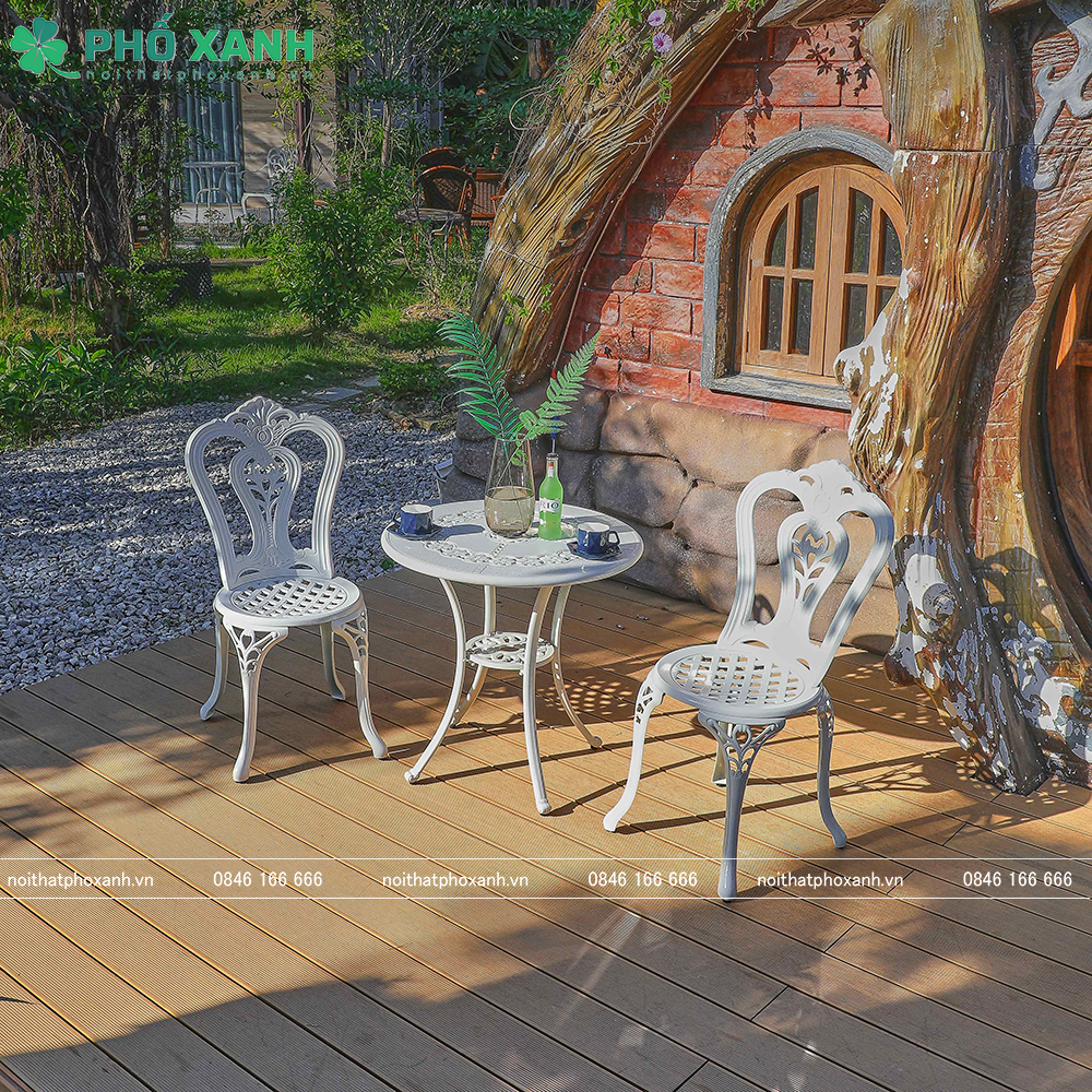 Dễ dàng bảo trì: Chất liệu nhôm và lớp sơn tĩnh điện giúp sản phẩm dễ dàng vệ sinh, chỉ cần lau chùi bằng khăn ẩm để giữ cho bộ bàn ghế luôn như mới.