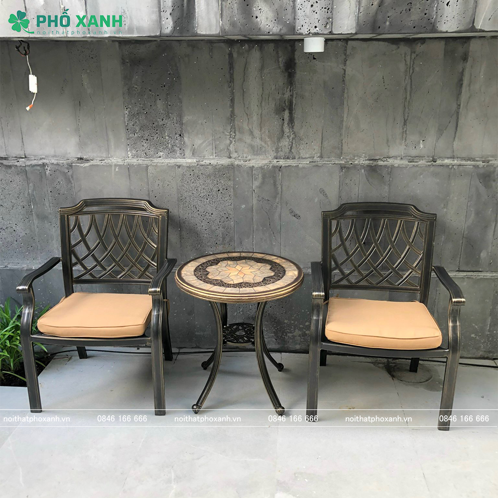 Bàn ghế ngoài trời đã trở thành một phần không thể thiếu trong không gian sống hiện đại. Đặc biệt là trong thời đại ngày nay khi mà cuộc sống đô thị đang ngày càng trở nên bận rộn và căng thẳng, việc có một góc thư giãn tại ban công hay sân vườn trở nên cần thiết hơn bao giờ hết. Một trong những sản phẩm nổi bật trên thị trường hiện nay chính là Bộ bàn ghế nhôm đúc nhỏ mặt đá BND-MD70TGD đến từ Công ty Cổ phần Xuất Nhập Khẩu Phố Xanh Việt Nam.