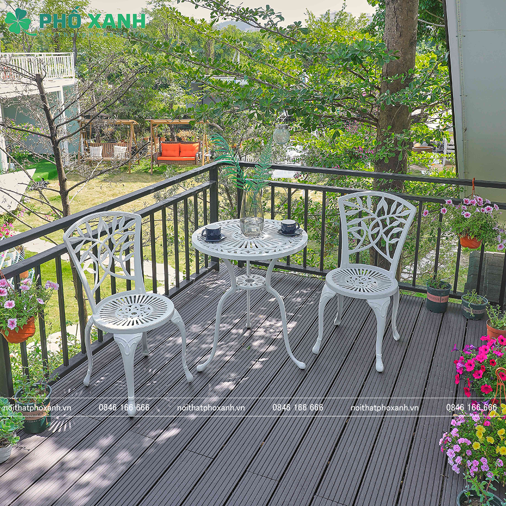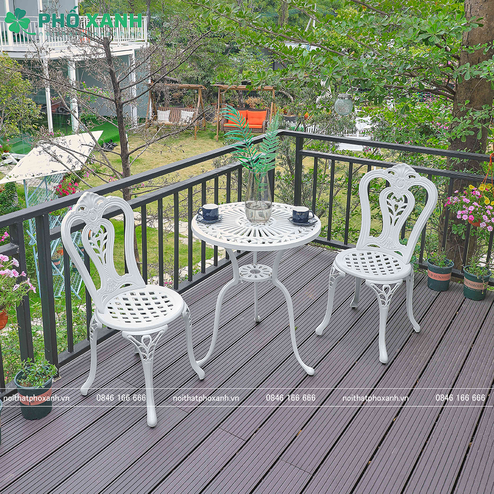 Nội Thất Phỗ Xanh sẽ giới thiệu đến các bạn về bộ bàn ghế nhôm đúc nhỏ ngoài trời sân vườn, ban công BND-60CCTK. Đây là một sản phẩm không thể thiếu cho không gian ngoại thất của bạn, đặc biệt là những không gian nhỏ như ban công hay sân vườn.