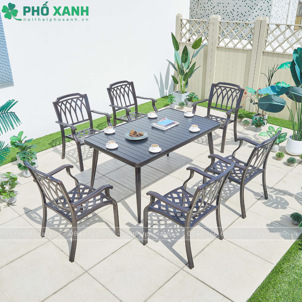 Bộ bàn ghế nhôm đúc sân vườn biệt thự nan nhôm đúc 6 ghế BND-NN15090VD là lựa chọn hoàn hảo cho không gian sân vườn, sân thượng, nhà hàng và biệt thự cao cấp.