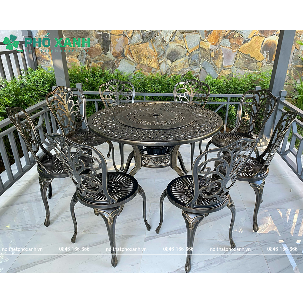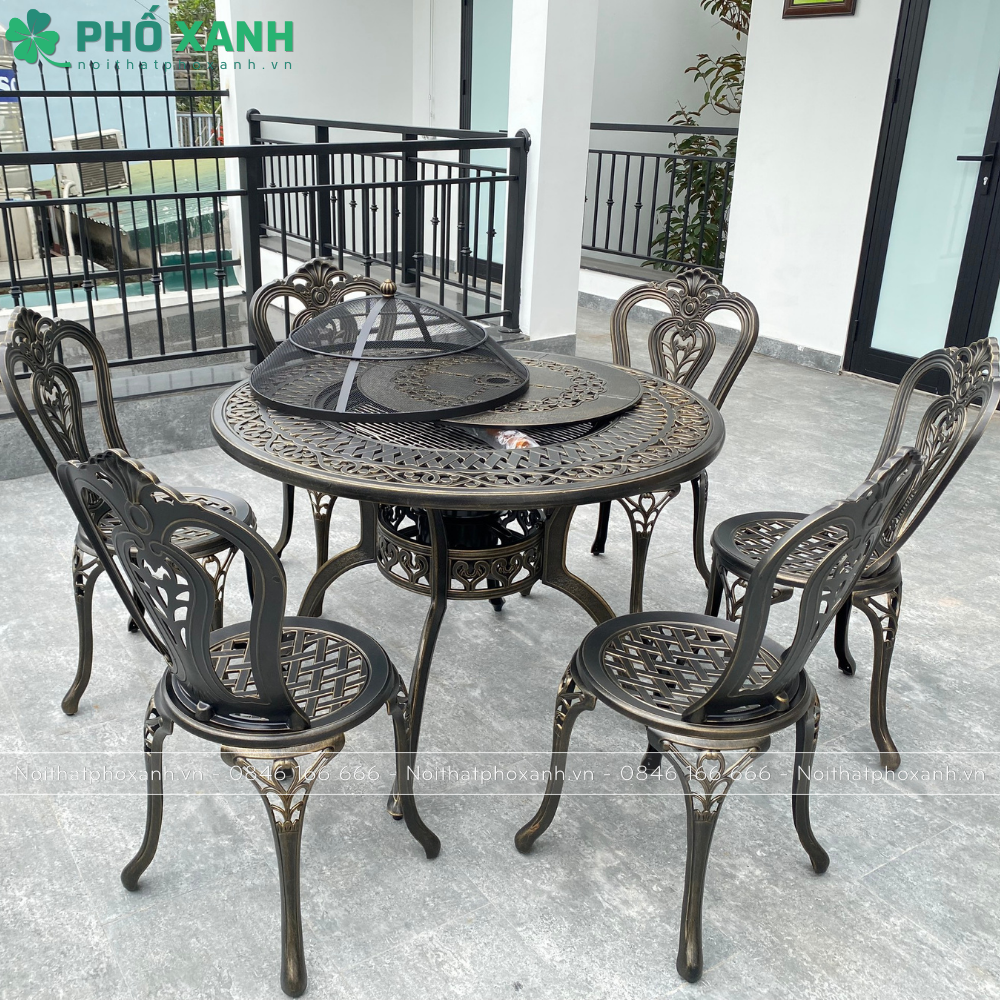 Ngoài ra, việc kết hợp nướng than hoa cùng bàn ghế nhôm đúc tròn tạo nên một không gian ấm cúng và tiện ích cho việc tổ chức các buổi tiệc nướng BBQ cùng gia đình và bạn bè. Bạn có thể thưởng thức những món ăn ngon và tận hưởng không khí thoải mái trong không gian ngoài trời.