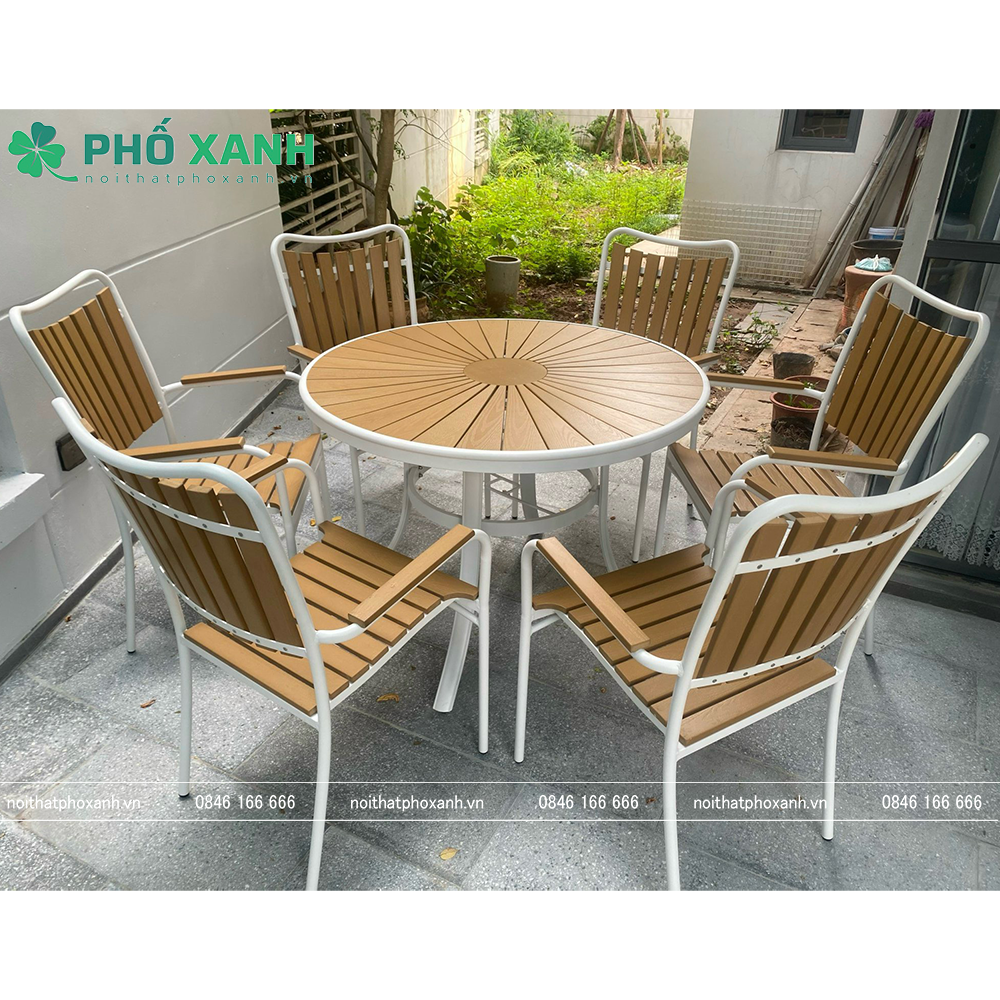 Bộ bàn ghế nhựa Composite BCP-105NGKT là một sản phẩm được Phố Xanh nhập khẩu và phân phối tại thị trường Việt Nam. Sản phẩm này không chỉ thích hợp cho các nhà hàng, quán cà phê mà còn là lựa chọn lý tưởng cho những buổi tiệc, sự kiện ngoài trời.