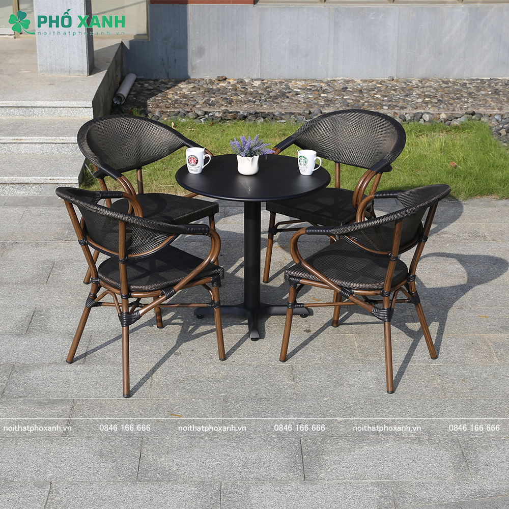 Với chất liệu chắc chắn, bền bỉ và thiết kế tinh tế, bộ bàn ghế này sẽ mang đến sự thoải mái và phong cách cho khách hàng của bạn. Không chỉ vậy, với kiểu dáng giả cổ, bộ bàn ghế này còn tạo điểm nhấn thu hút sự chú ý của khách hàng. Hãy đầu tư vào bộ bàn ghế Textilene giả cổ này để tạo nên một không gian độc đáo và ấn tượng cho quán cà phê sân vườn của bạn!