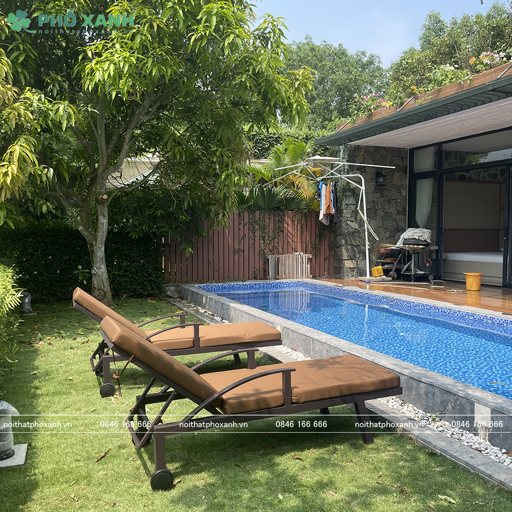 Màu sắc chủ đạo của sản phẩm là màu đồng, tạo nên sự sang trọng và hiện đại cho không gian hồ bơi. Ngoài ra, ghế hồ bơi này còn đi kèm với đệm, tạo sự thoải mái và êm ái khi người dùng sử dụng.