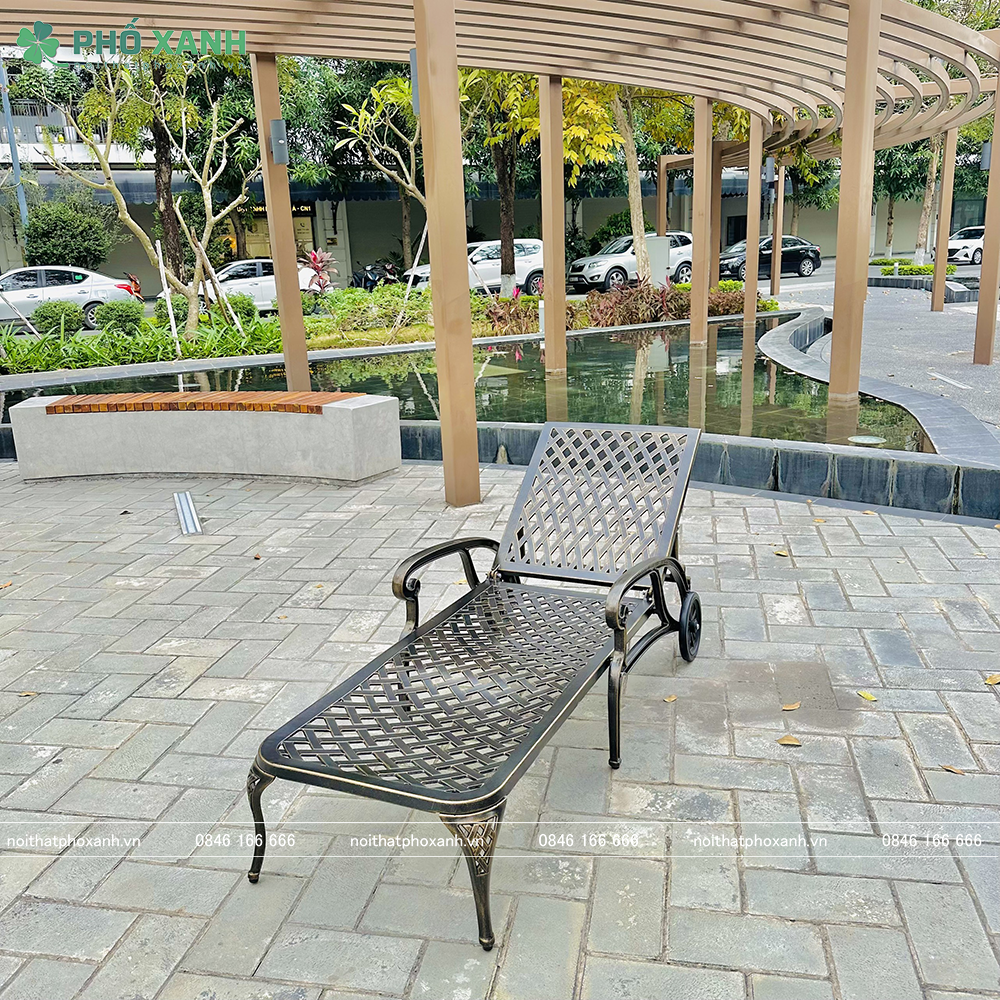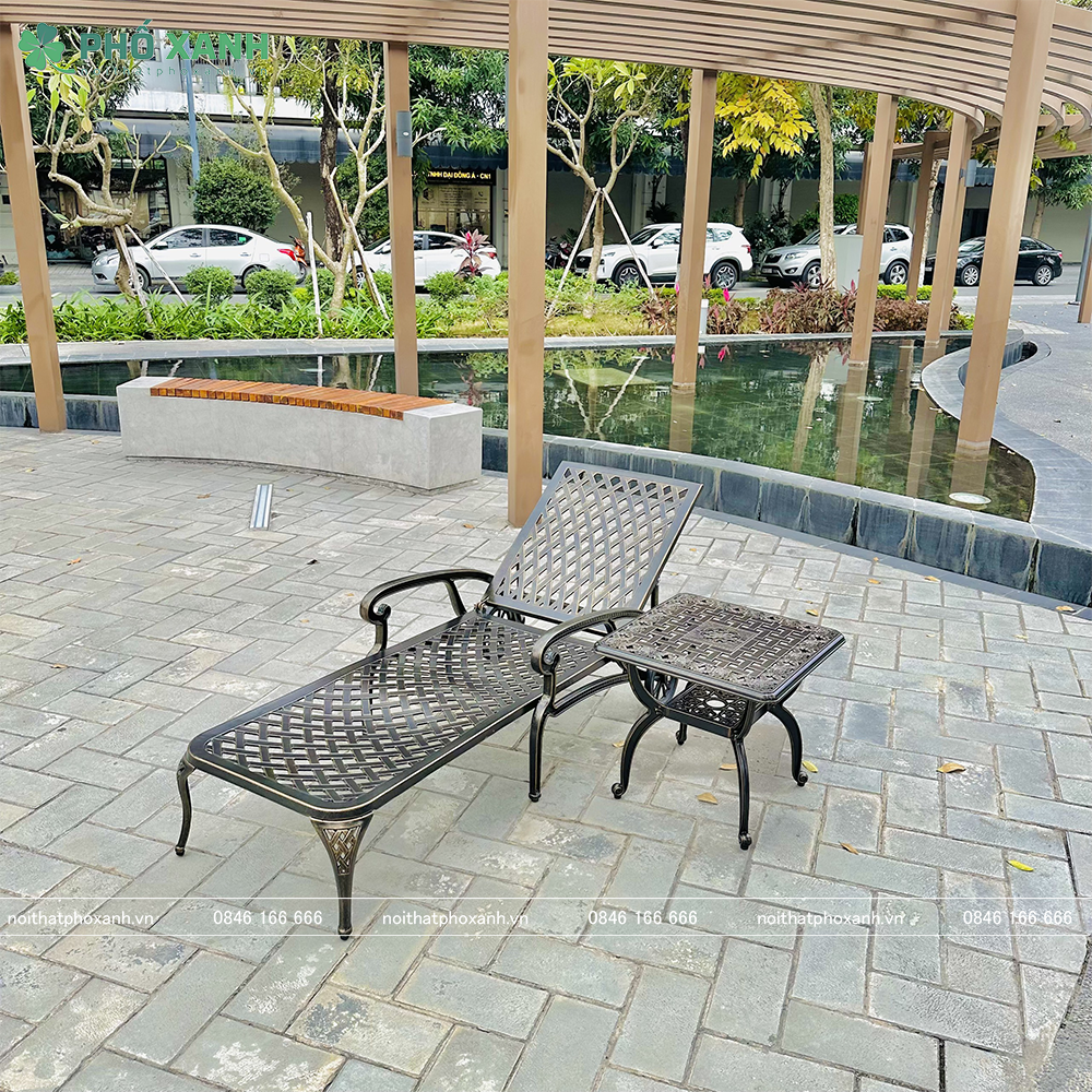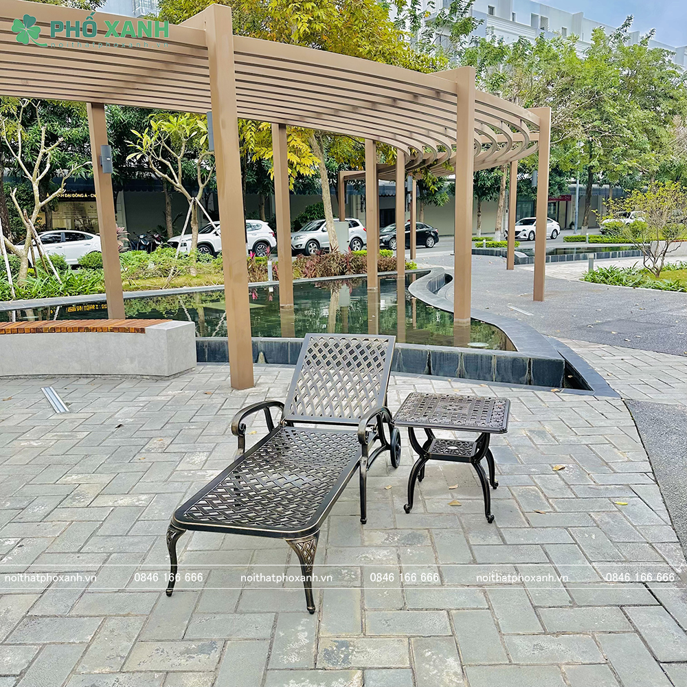 Chất liệu hợp kim nhôm không gỉ giúp sản phẩm chống chịu tốt trước tác động của thời tiết. Điều này đặc biệt quan trọng đối với những vùng có khí hậu khắc nghiệt hoặc gần môi trường nước như hồ bơi. Sản phẩm được sơn tĩnh điện toàn bộ, tạo nên một lớp bảo vệ tối ưu, với màu đen đồng tạo nên sựa trang nhã, lịch lãm cho sản phẩm, dễ dàng phối hợp với các nội thất khác.