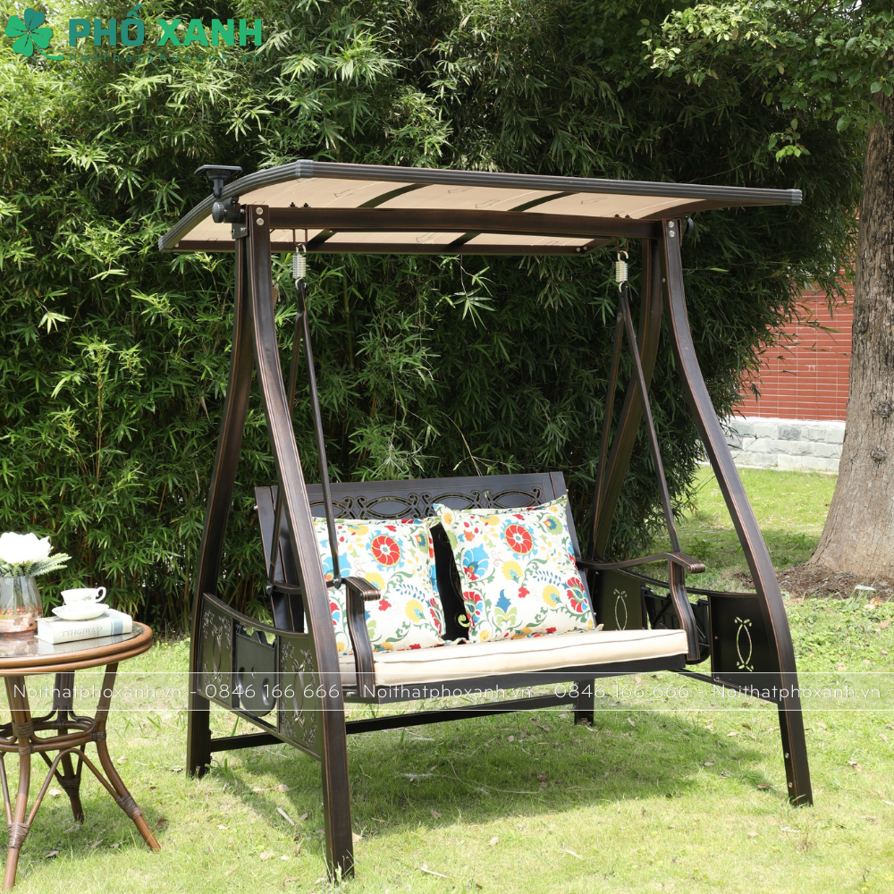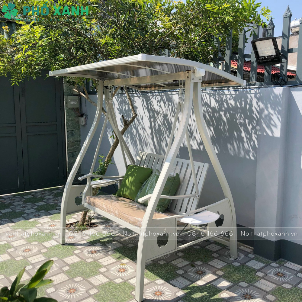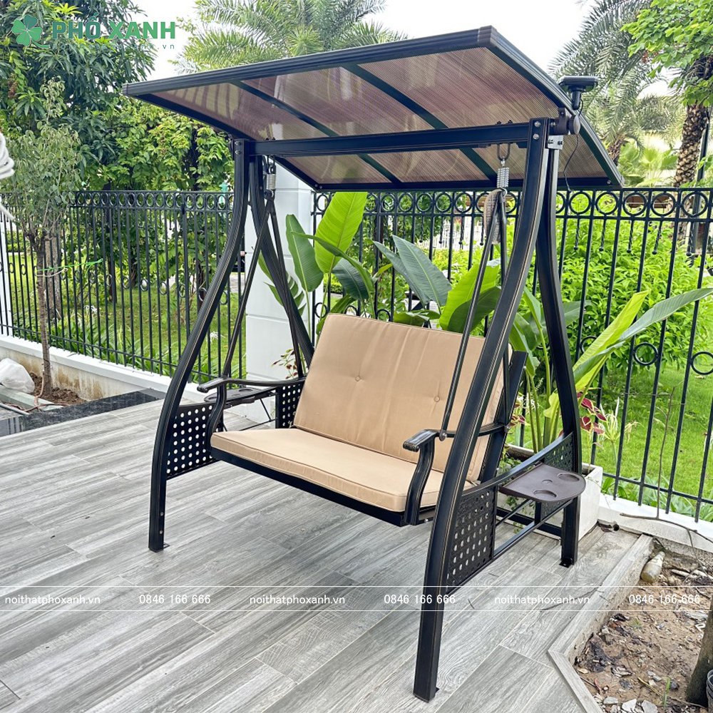 Với chất liệu chắc chắn và bền bỉ, xích đu sân vườn 2 chỗ ngồi có mái che tích hợp năng lượng mặt trời sẽ là người bạn đồng hành lý tưởng cho không gian ngoài trời của bạn. Hãy tận hưởng những giây phút thư giãn và bình yên cùng xích đu này!