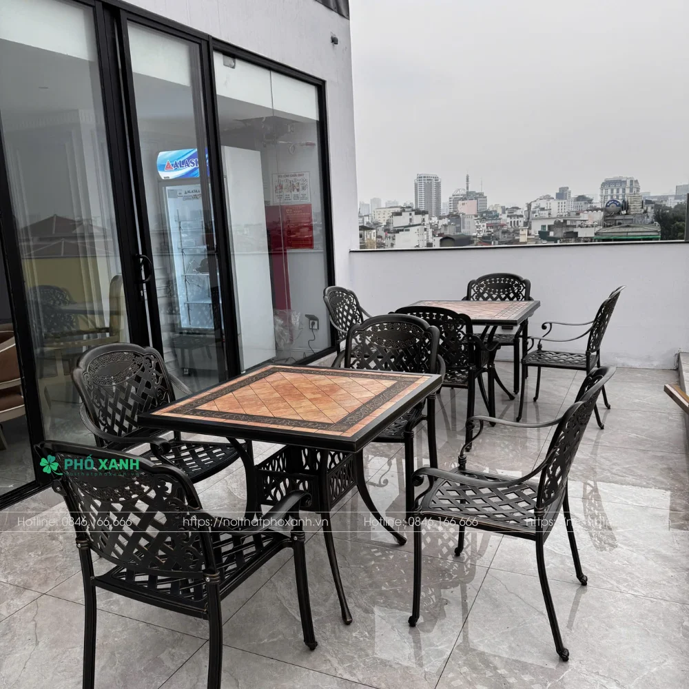 Trong thiết kế nội thất ngoại thất, bàn ghế nhôm đúc và bàn ghế sắt là hai dòng sản phẩm được sử dụng phổ biến nhờ độ bền cao, tính ứng dụng linh hoạt và phù hợp với nhiều không gian khác nhau như sân vườn, ban công, quán cà phê hay khu nghỉ dưỡng.