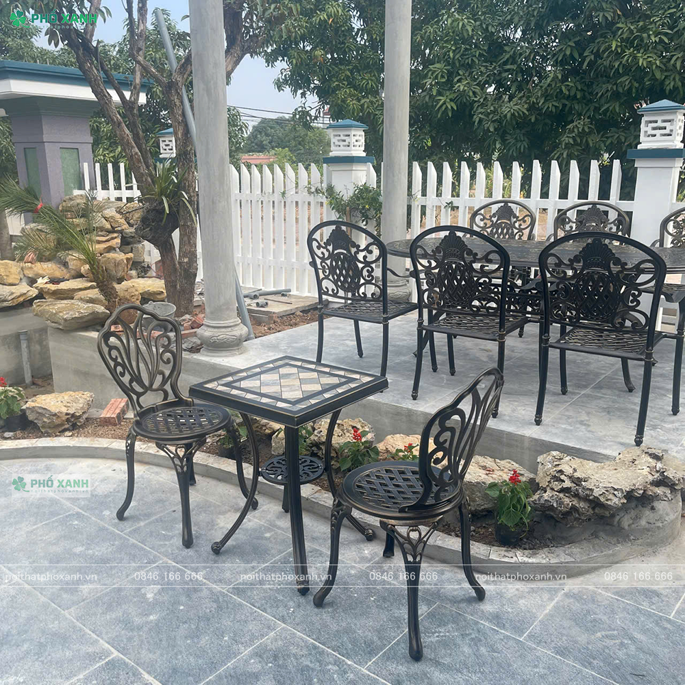 • Bộ bàn ghế nhôm đúc mặt đá vuông BND-6060MDD