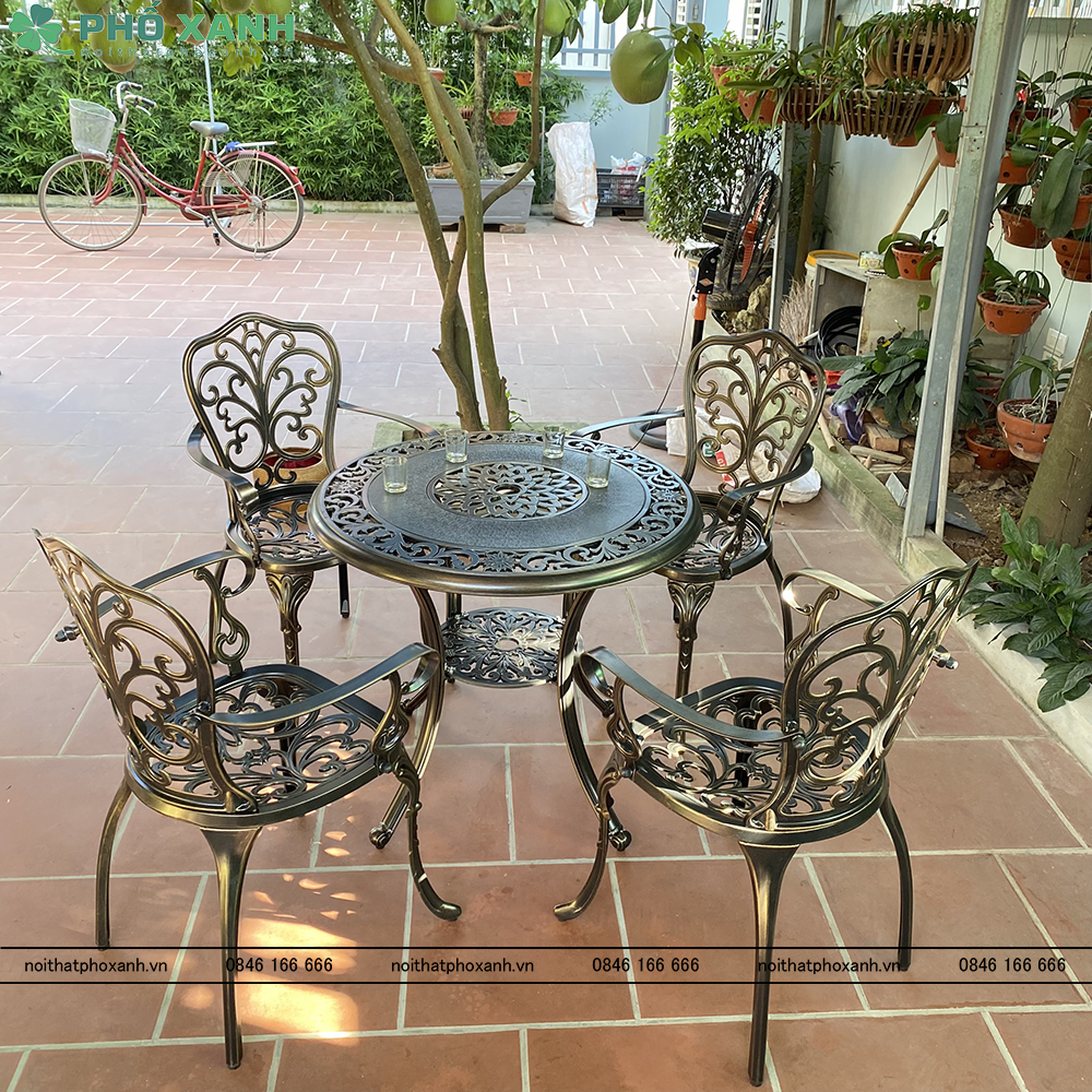 Bộ bàn ghế nhôm đúc ngoài trời D80 màu đen đồng BND-HV80D